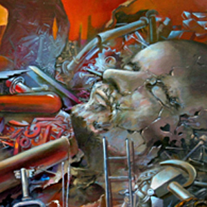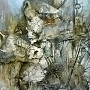 He thinks of his work as a bridge that links reality to abstraction and explores themes of life, death, nature, transformation, nostalgia and regeneration. He uses both traditional and non-traditional tools to create richly layered and visual textures in his paintings.